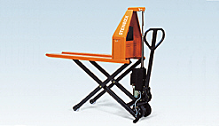 A scissors pallet truck is a hydraulic pallet truck with a scissors lift for raising loads to working heights.